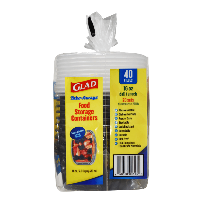 Glad Take-Aways’ 16oz Deli/Snack container is ideal for snack and portion storage. Featuring Snap-Seal technology, it offers a leak-resistant seal that keeps food fresh. Made from BPA-free, FDA-compliant materials, this durable container is microwave, freezer, and dishwasher safe for added convenience. Its stackable design maximizes storage space, and the black finish provides a professional appearance. A reliable and versatile solution for everyday food storage. Sustainable options available.