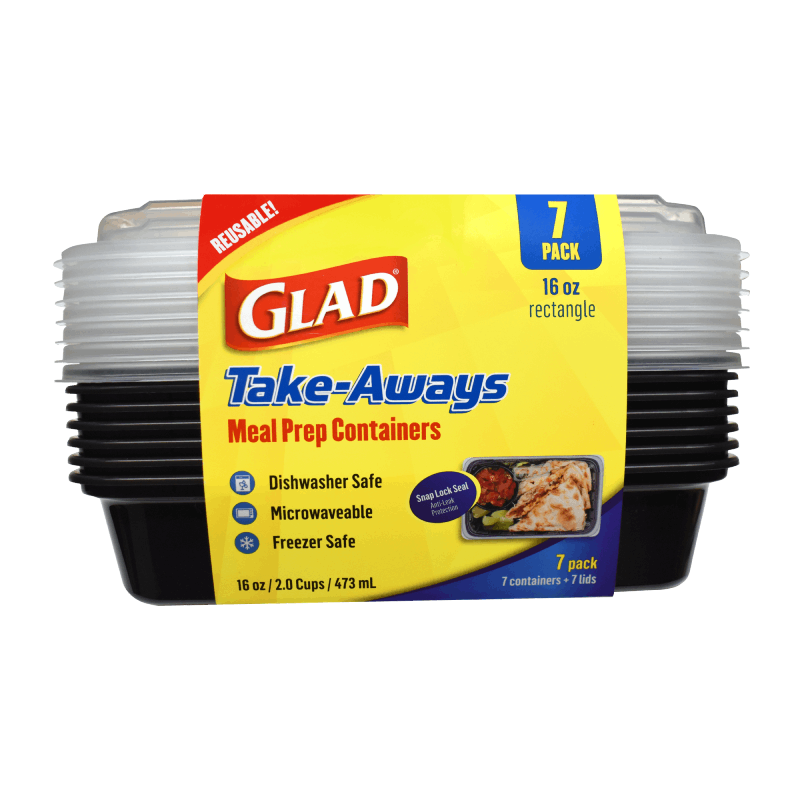 Snack smart, store smarter. This 16oz container was built to tackle portion prep, snacks, small meals, and mid-day cravings—with no mess. Glad Take-Aways’ 16oz Rectangle deli container features a secure Snap-Seal lid and durable BPA-free, FDA-compliant construction. Safe for use in the microwave, freezer, and dishwasher, it’s a reliable solution for snacks or small meals. The sleek black finish gives it a polished look, while the stackable design keeps your kitchen clutter-free. Sold in a belly-band of 7, built for busy households. Sustainable options available.