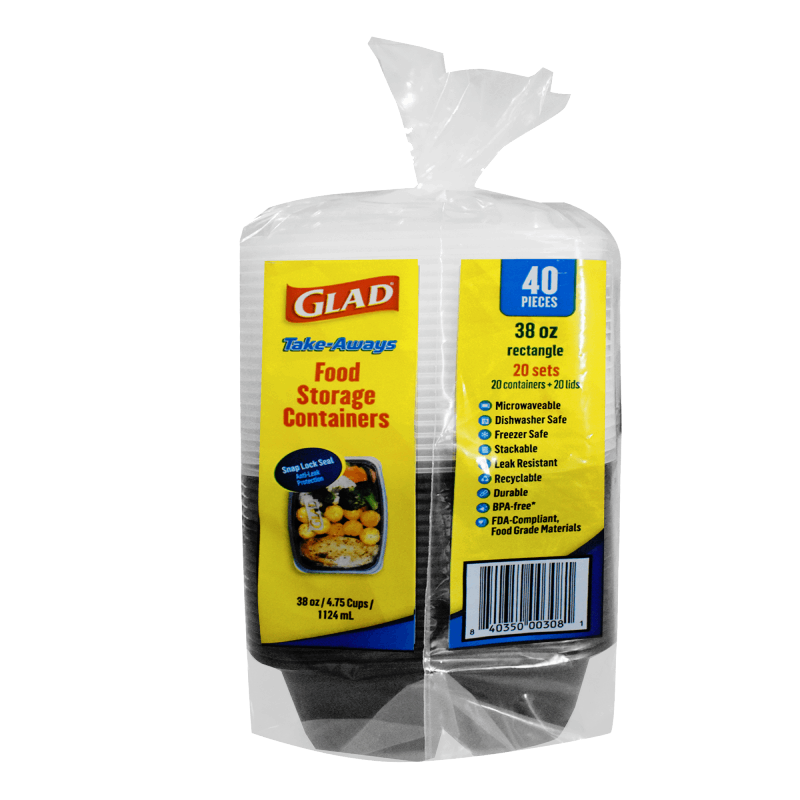 Glad Take-Aways’ 38oz Rectangle food container is built for larger servings and bulk meal prep. With a leak-resistant lid and BPA-free, FDA-compliant construction, it’s microwave, freezer, and dishwasher safe. Ideal for keeping big meals fresh and organized—whether at home or on the move. Sold in a bag of 20—perfect for stocking up on meal prep or family lunches. Sustainable options available.